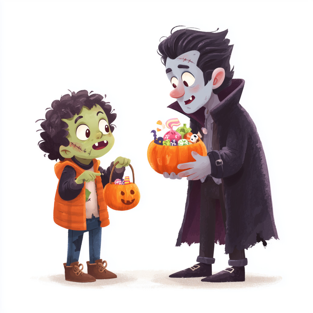 A Zombie Trick or Treating at a Vampire’s house